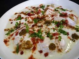 Dumplings of gram flour fried and soaked in water. Served with boiled potatoes, garbanzo beans, vegetable salad, yogurt, and home special chaat masala topped with crushed crackers.